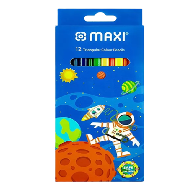 Maxi Triangular Colour Pencils in a Cardboard Box by “Keep Smiling” offer budding artists a vibrant and versatile set of 12 richly pigmented hues.