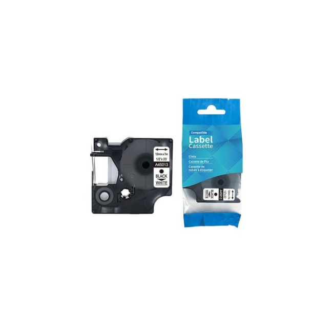 Compatible Label Tape Black On White 12MM Dymo